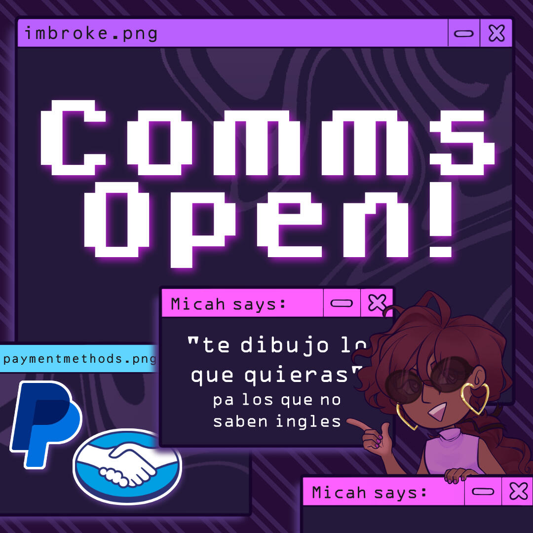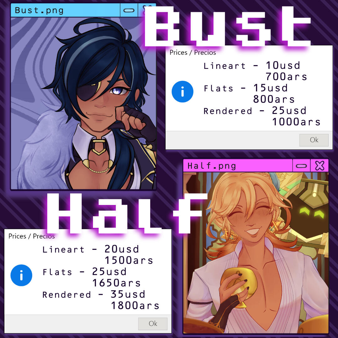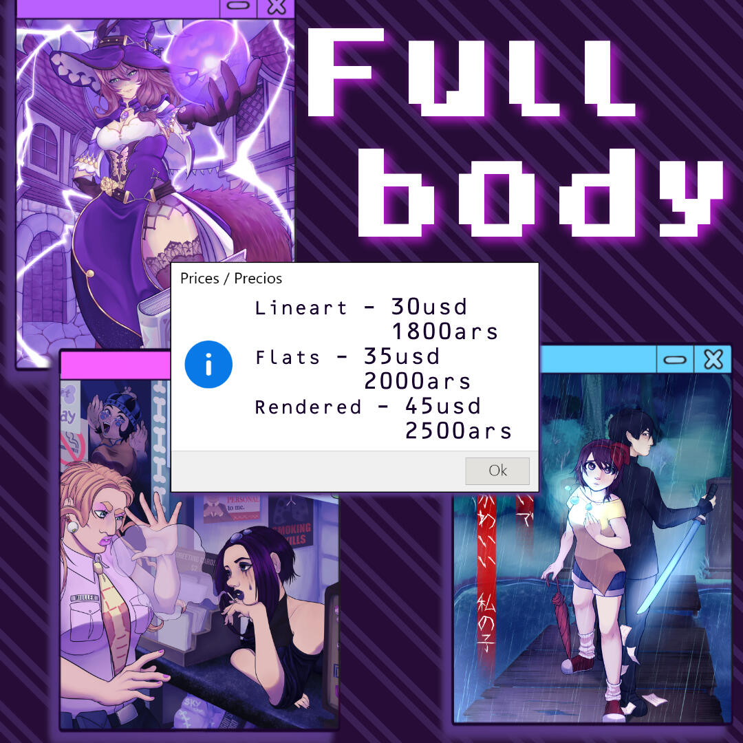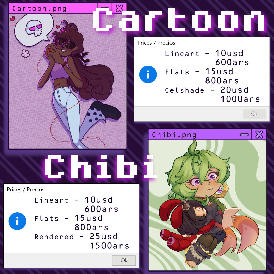 For OCs, I appreciate if you send a reference sheet with flat colors and anything else you consider important, but we can work it out if you don't have one.